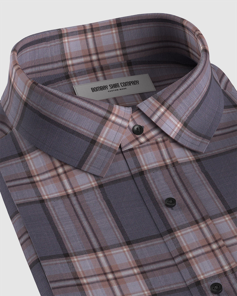 Japanese Lyocell Twill Checked Shirt - Purple